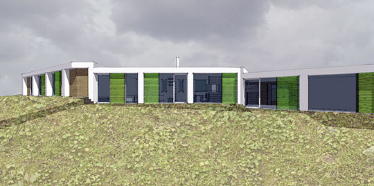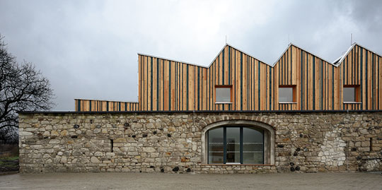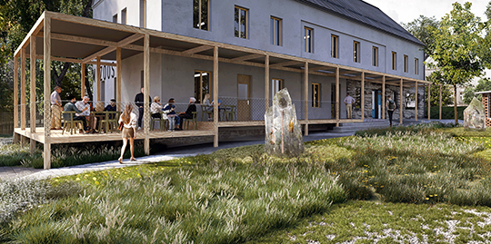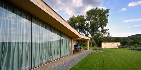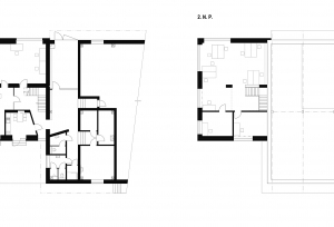 Po úvahách o vestavbě firemního zázemí do prostoru skladu, jsme se posunuli k záměru oživit špatně rekonstruovaný, ladem ležící skladníkův domek a do skladu jsme umístili pouze hlavní vstup a zázemí.
