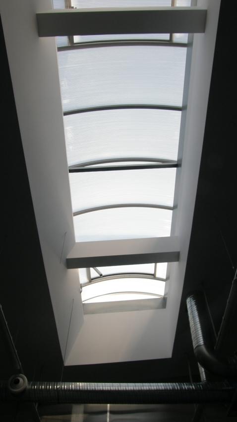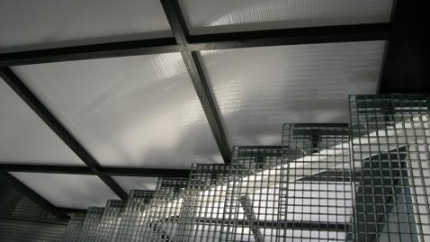 Plášť objektu je navržen s hladkých ocelových PUR panelů kladených horizontálně. Specifikou návrhu je použití výraznějších světle červených panelů, které jsou ve všech rozích zaobleny, takže objekt dostává více organický charakter. Takto je lépe včleněn do hodnotné krajiny Střížovického vrchu. Tomu napomáhá i návrh tzv, zelené střechy, kde tato exponovaná plocha bude osázena extenzivní zelení s minimální potřebou údržby. Toto řešení také napomáhá větší životnosti namáhaného izolačního souvrství rozsáhlé střechy.