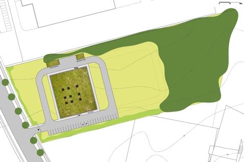 Koncepce zeleně je řešena tak, aby areál byl lemován relativně masivními hmotami stromů (zadní část) a keřů (přední část) s tím, že směrem k vjezdu se jedná více o zeleň okrasnou, směrem do zadní části pozemku o zeleň blízkou okolní krajině.