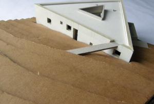 Svislá osa pozemku pomyslně napnutá mezi kaplí a hřebenem Krušných hor je zároveň těžnicí rovnostranného trojúhelníka, který pozemek vymezuje. Z tohoto počátku vzniká dům.