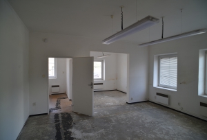 V čele skladu domek skladníka (nejspíš), v 90. letech přestavěný pro administrativní účely.